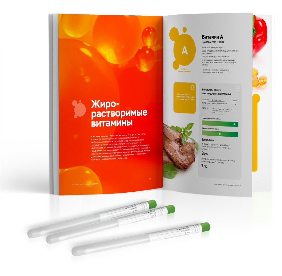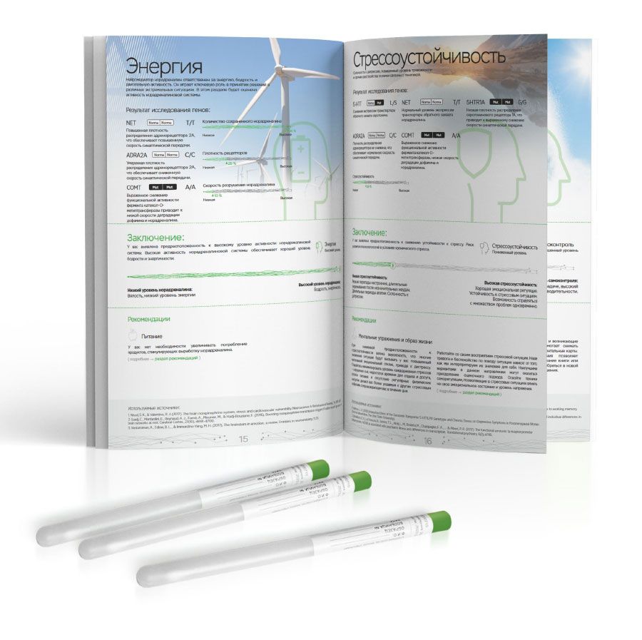 Более сфокусированный тест для коррекции питания и подбора тренировок. Помогает сформировать рацион по генотипу, определить особенности метаболизма для энергии и веса.