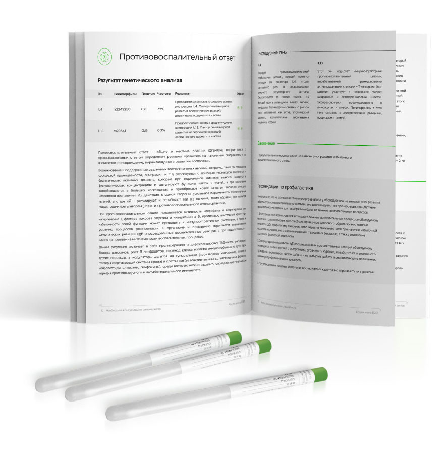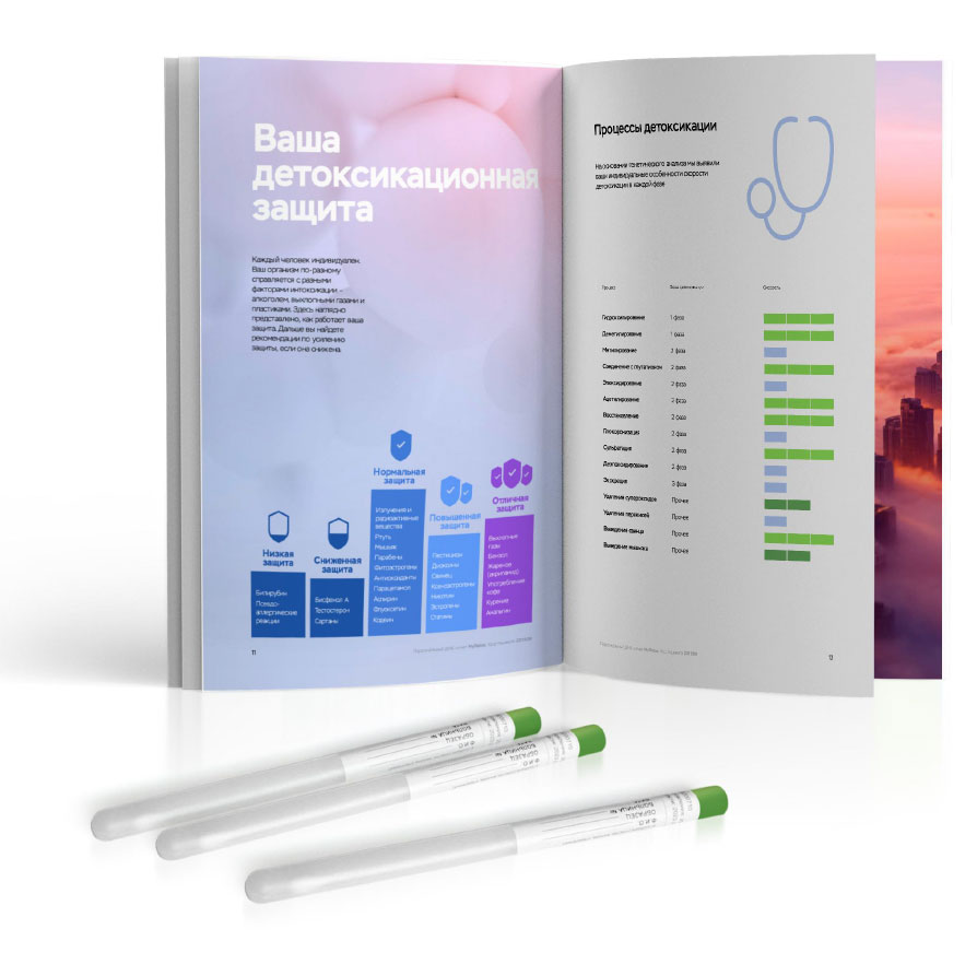 Помогает узнать особенности организма для поддержки здоровья через питание и физические нагрузки, подобрать рацион, определить реакцию на глютен/лактозу.