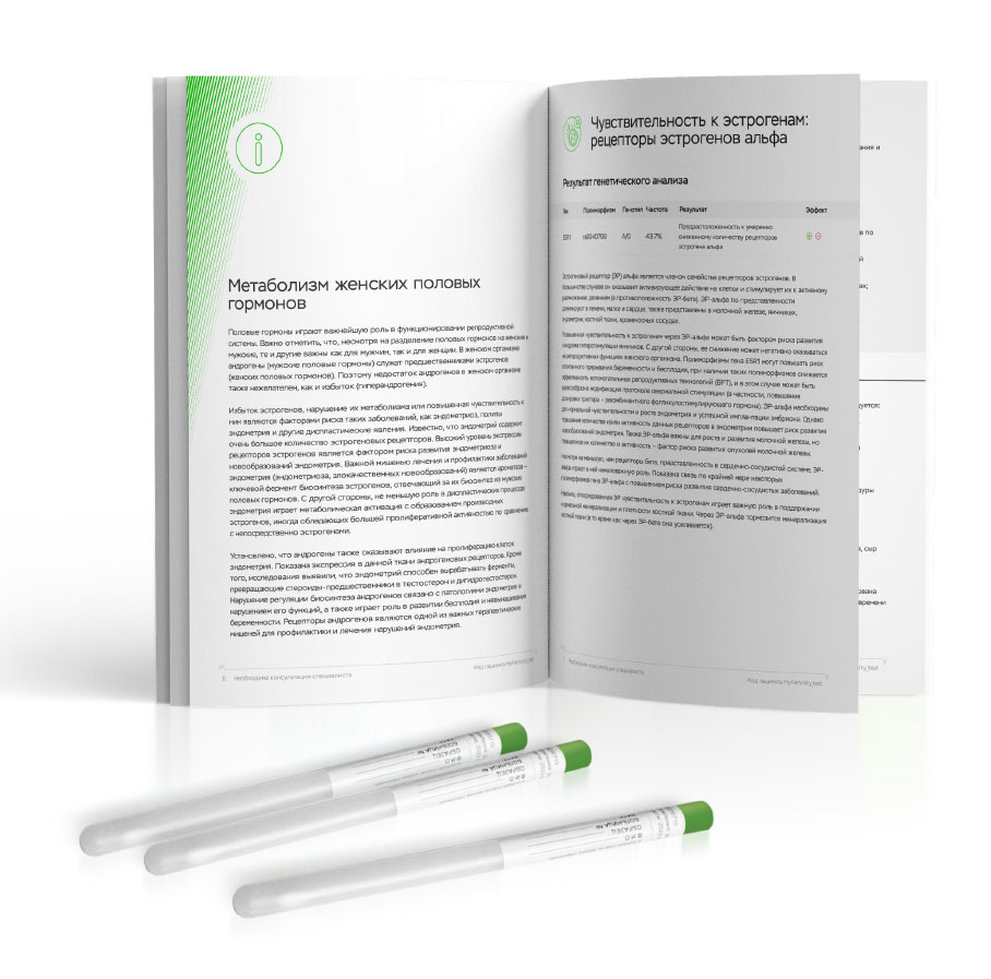 Оценивает генетические особенности репродуктивной системы женщин. Помогает узнать о метаболизме женских гормонов, потребности в фолатах.